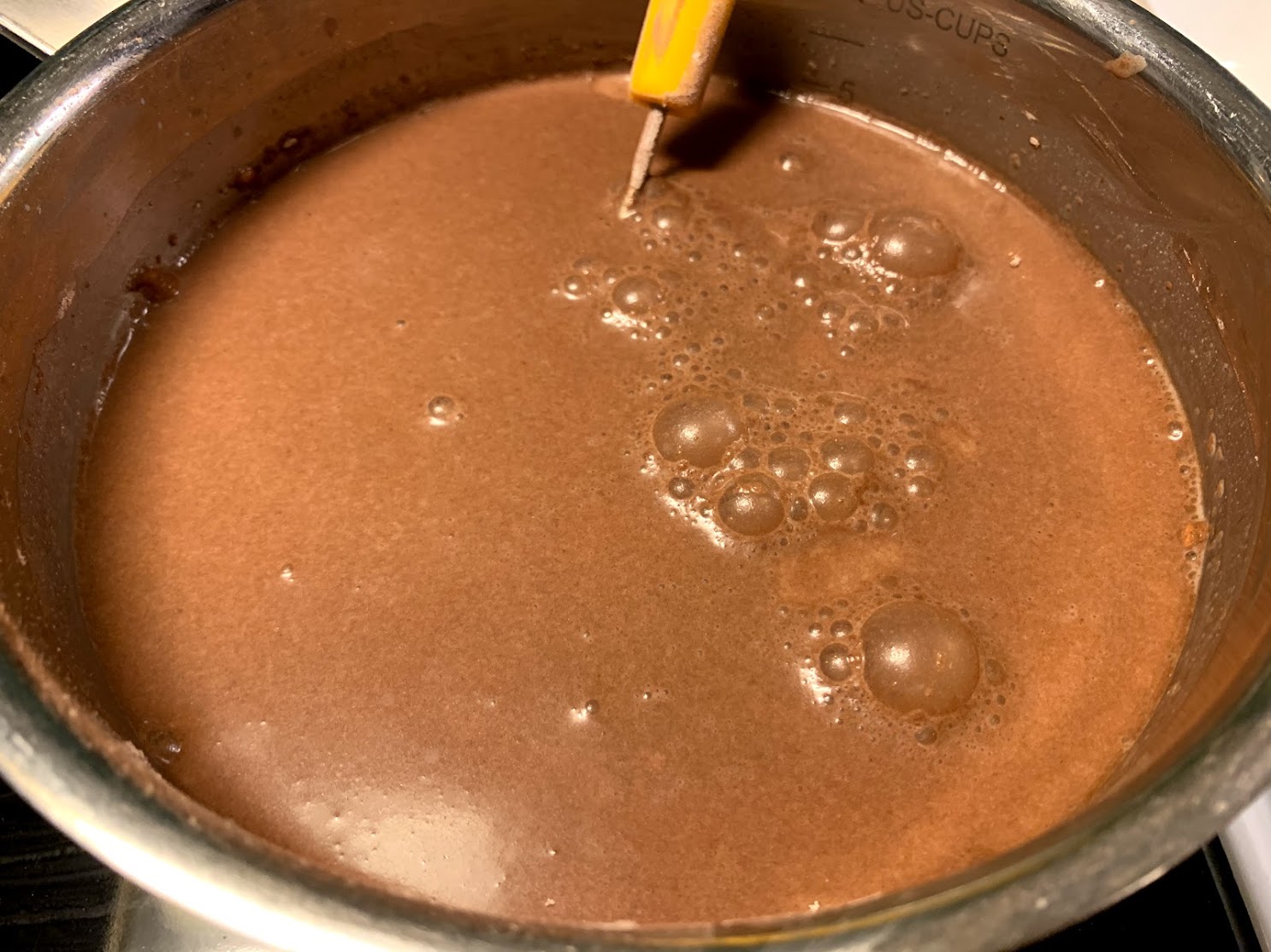 - Tatli kaynayınca içine vanilya ile çikolatayı da koyun ve karıştırın. Tencereyi ocaktan alın.